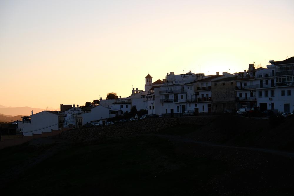 Sunrise over an Andalusian white village.