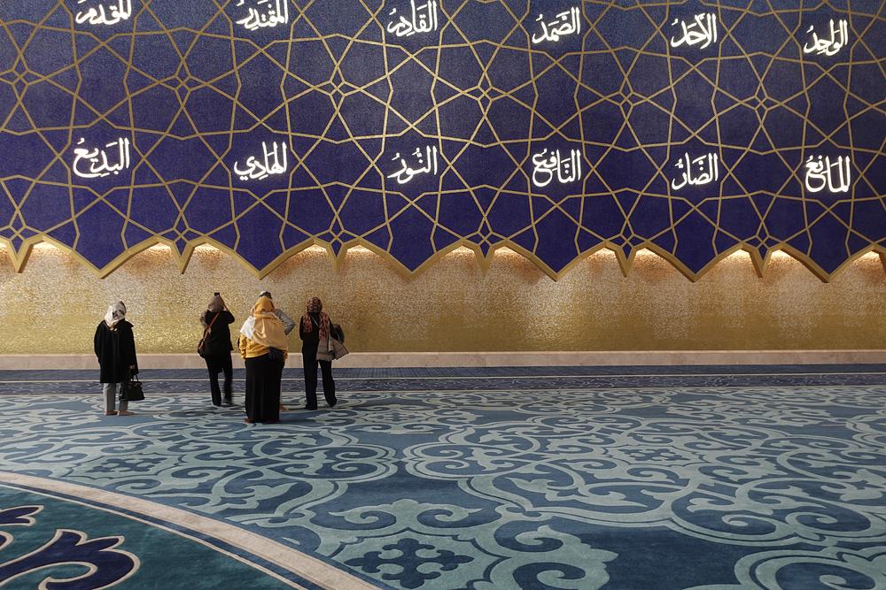 A wall inside the Astana Grand Mosque in Kazakstan shows the many names of Allah.